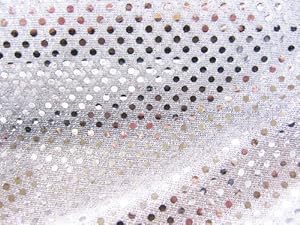 Product Description : Our Faux Sequin Knit featured small reflective dots that are adhered to a lightweight, sheer knit. 4" stretches to 6" across the grain. Since the knit is so airy, you can change the look of the fabric with the lining you choose -- white will brighten it and black will darken it, etc. This fabric is a white knit with silver dots and silver lurex. Faux Sequin Knit Fabric - 1126 Silver. Polyester with Lurex. 44" wide. Hand wash cool, line dry, no iron. Priced per yard.