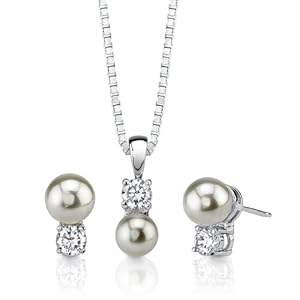 Pure Bliss: Sterling Silver Rhodium Finish Celebrity Inspired Bridal Jewelry Stud Earring Pendant Set with Faux Pearl and CZ